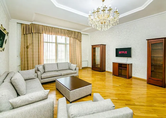 Set a mere 5 minutes' stroll from the Girl on a Bench Sculpture, Lilac Vip Apartment In Nizami Baku has a terrace furnished with a dining table. The Ali Shamsi Workshop is within a few blocks of the spacious apartment, and the Azerbaijan State Academic Opera and Ballet Theater is only 0.9 km away.